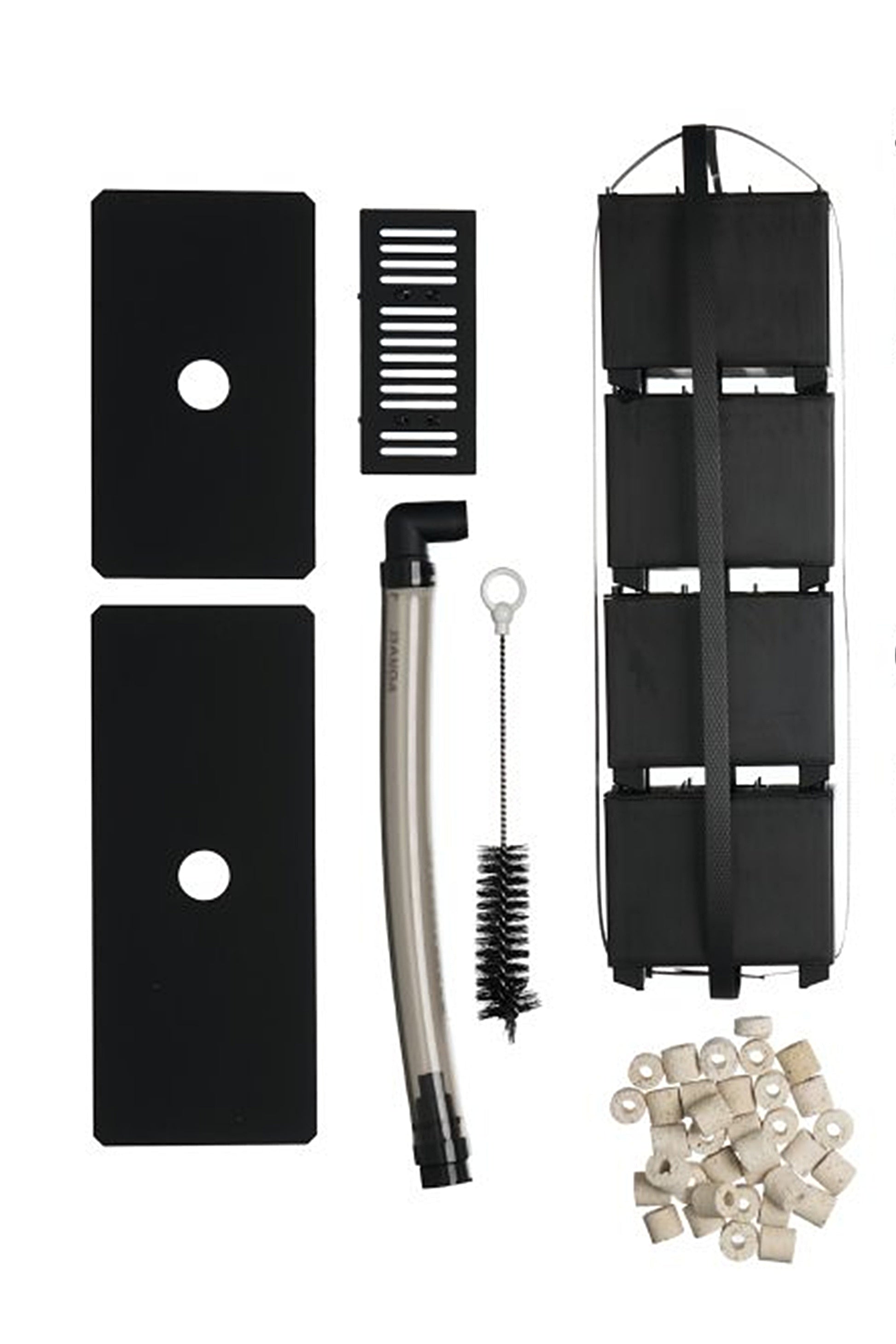 El set incluye un tanque con una capacidad de 170 litros, fabricado con vidrio óptico de 6 mm de grosor y reforzado con la tecnología Safe Tank, que garantiza seguridad y durabilidad. Su sistema de filtración avanzado consta de cinco cámaras que aseguran una limpieza eficiente del agua, favoreciendo el crecimiento saludable de corales y anémonas. La primera cámara retiene impurezas gruesas, mientras que la segunda permite la instalación de componentes adicionales como calentadores o sondas de pH. La tercera cámara cuenta con un separador de proteínas que elimina impurezas orgánicas, y la cuarta ofrece cestas para medios filtrantes sueltos, como el BioCeraMAX 600 cerámico incluido. Finalmente, la quinta cámara asegura una circulación uniforme del agua, esencial para la vida marina.