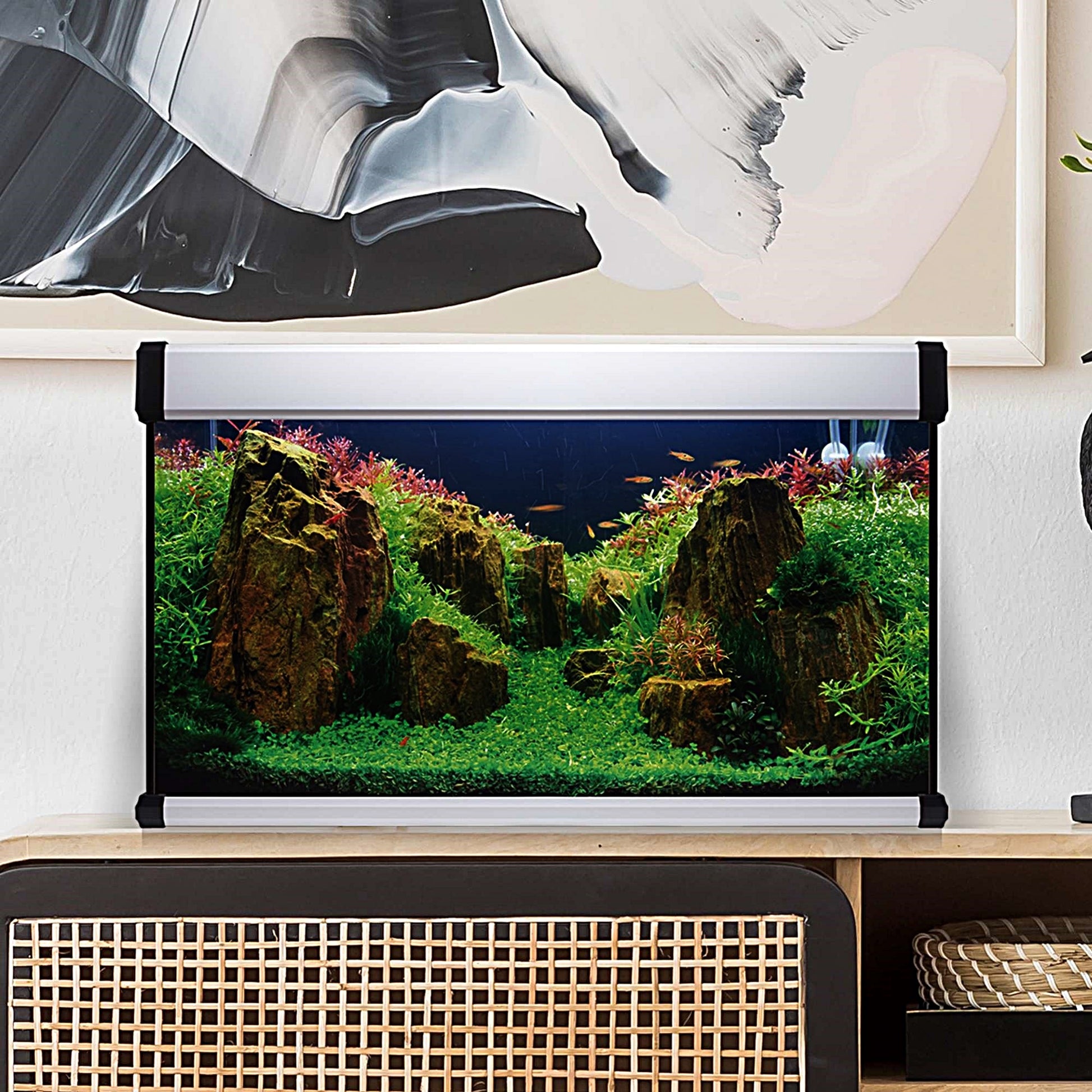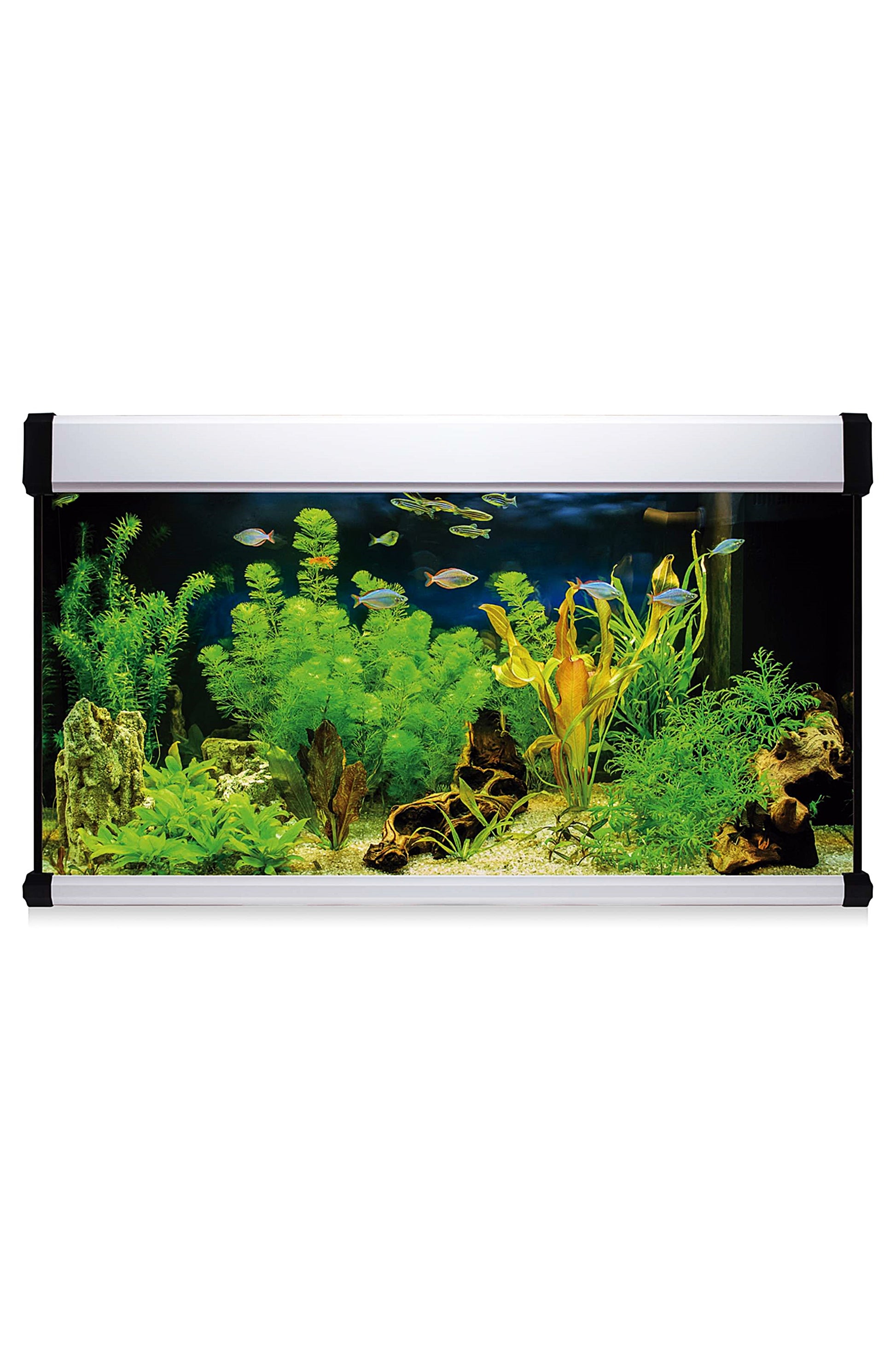 El diseño en color blanco del acuario le da un aspecto elegante y moderno, que se integrará fácilmente en cualquier decoración de hogar. Además, su construcción robusta y duradera garantiza una larga vida útil, para que puedas disfrutar de tu acuario durante muchos años.